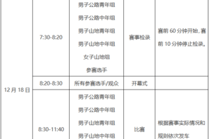 (4)男子山地中年组参赛运动员年龄为41-65周岁,即出生年龄在1957年12月04日至1982年12月03日之间;
