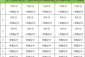 (2)本站录取团体成绩前8名,团体成绩前3名颁发奖金及证书,4至8名颁发荣誉证书。
