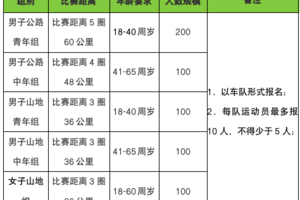 1、以福建省内各俱乐部车队或协会车队为单位统一报名,每支车队最多可报10名运动员,不少于5名运动员。若车队少于5人,将只能获取个人奖励,无法获取团体积分和团体奖励。